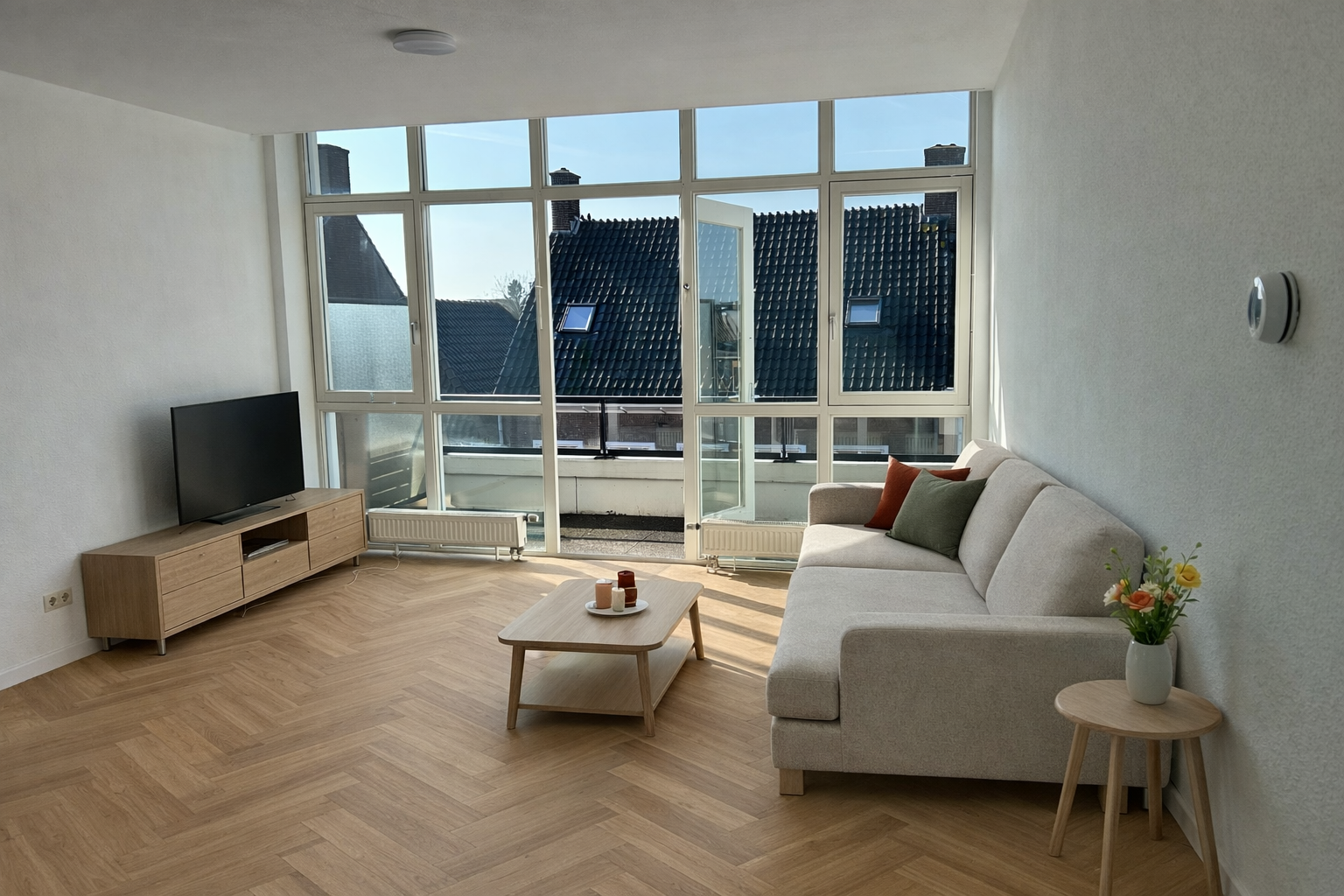 Een mooi, royaal appartement met zonnig balkon. De woning is voorzien van een woonkamer met open keuken, één slaapkamer, fijne badkamer en een balkon.