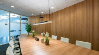 – systeemplafonds en hoogfrequente armaturen voor optimale verlichting