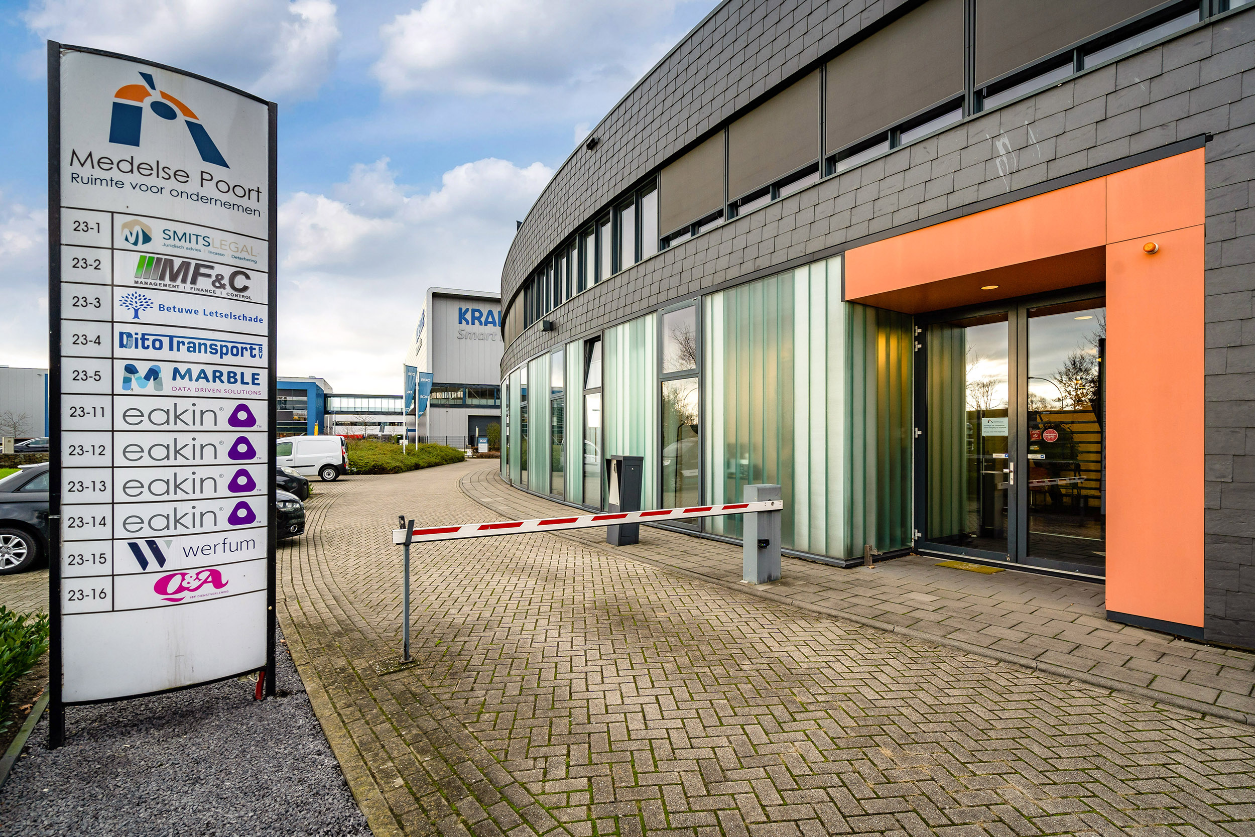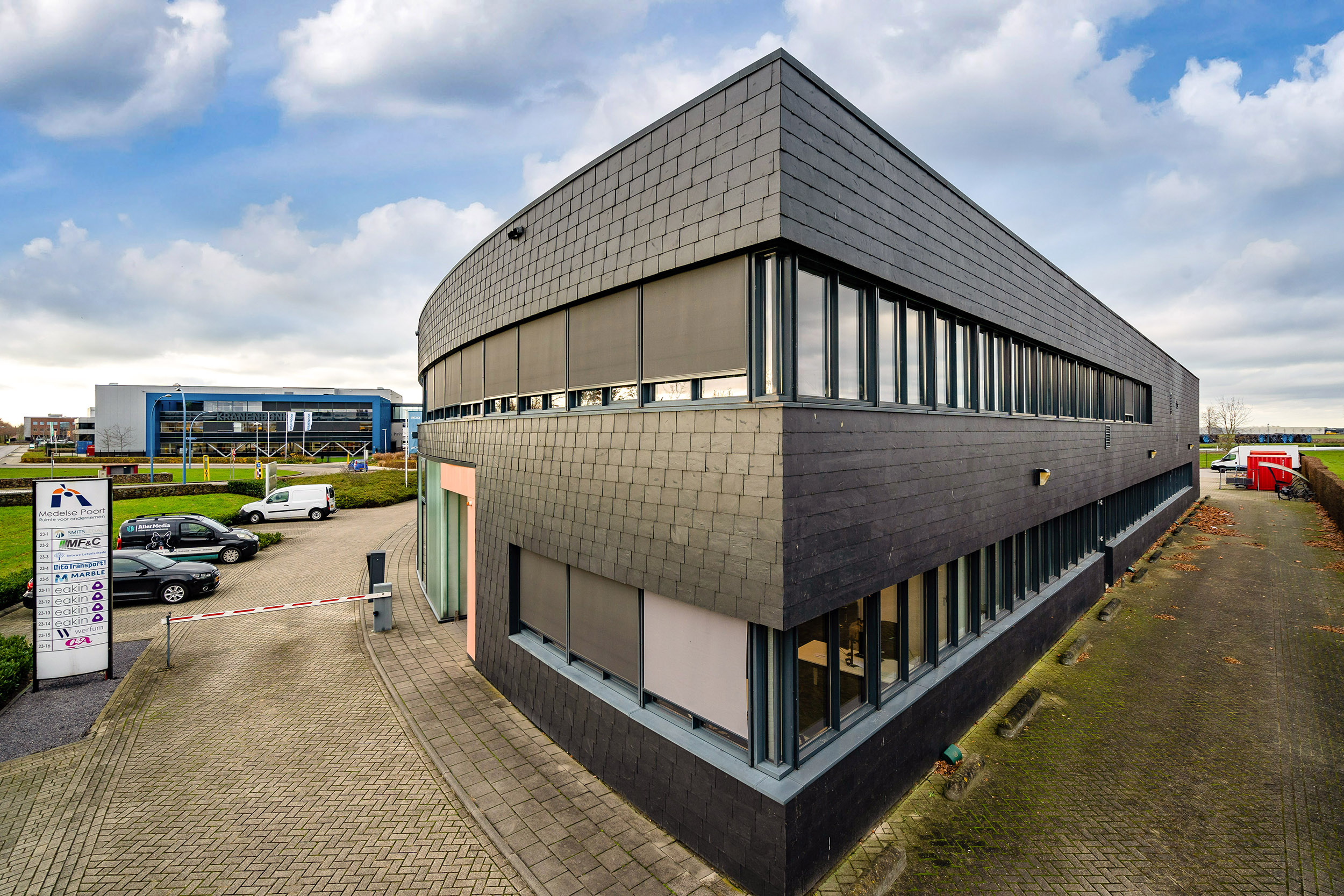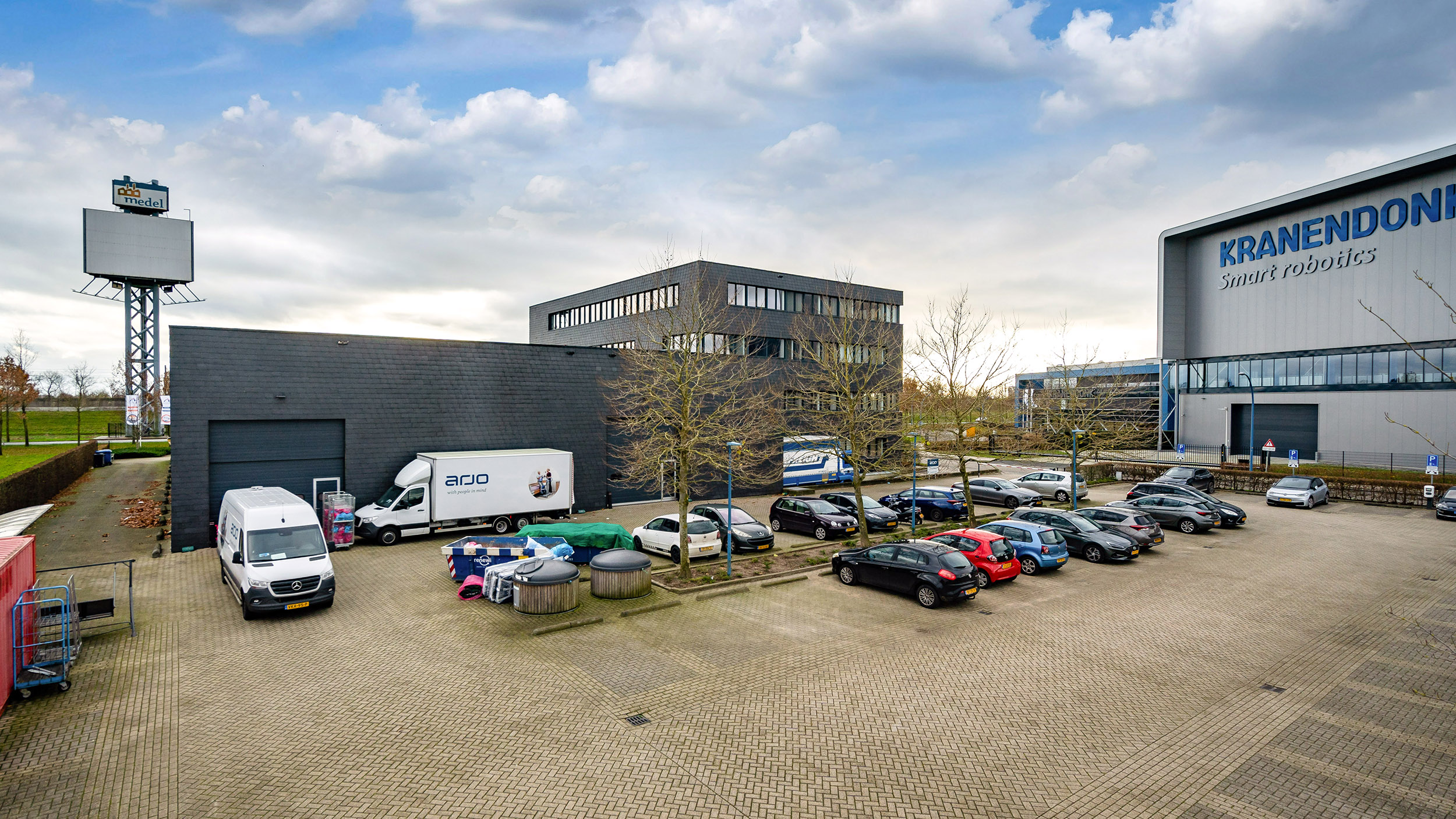 Gelegen op bedrijvenpark ‘Medel’ nabij de op- en afritten van de A15, waardoor het gemakkelijk bereikbaar is voor zowel werknemers als klanten.
