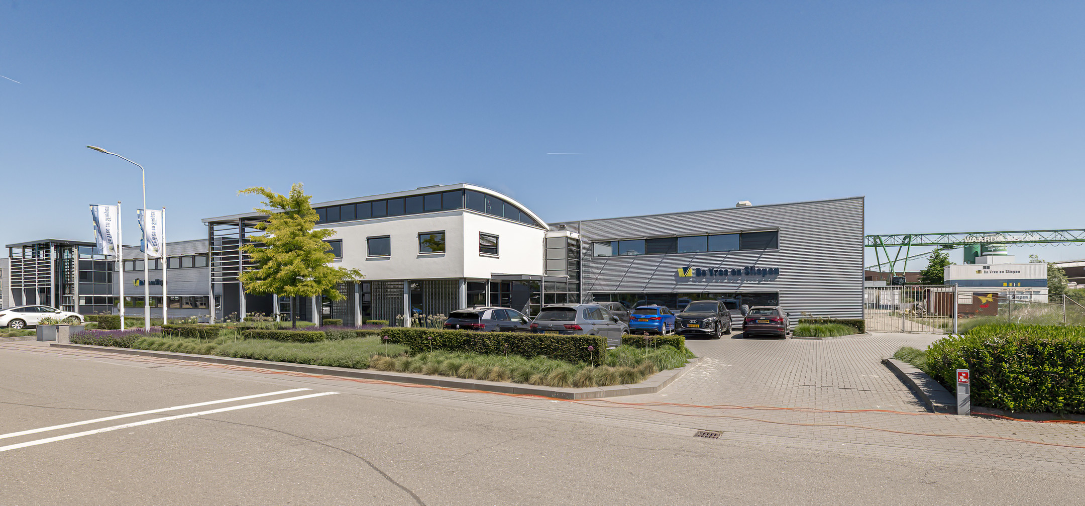 MODERN BEDRIJFSGEBOUW MET KANTOREN, WERKPLAATS EN VEEL BUITENTERREIN IS TE HUUR