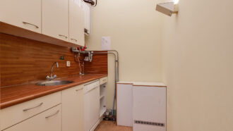 Aan de achterzijde van het pand bevinden zich nog 3 aparte kantoorkamers, een pantry en toilet.